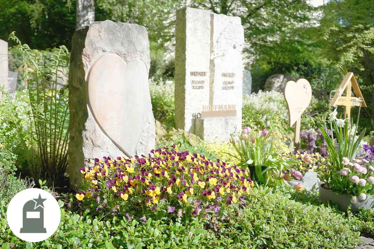 In unseren Erinnerungsgärten gibt es Grabstätten, die bereits mit einem harmonisch gestalteten Grabmal angelegt sind, sowie Flächen ohne Grabmal, die Raum für persönliche Gestaltung bieten. Diese kann im Rahmen der Friedhofsordnung frei erfolgen, erfordert jedoch stets eine Genehmigung.