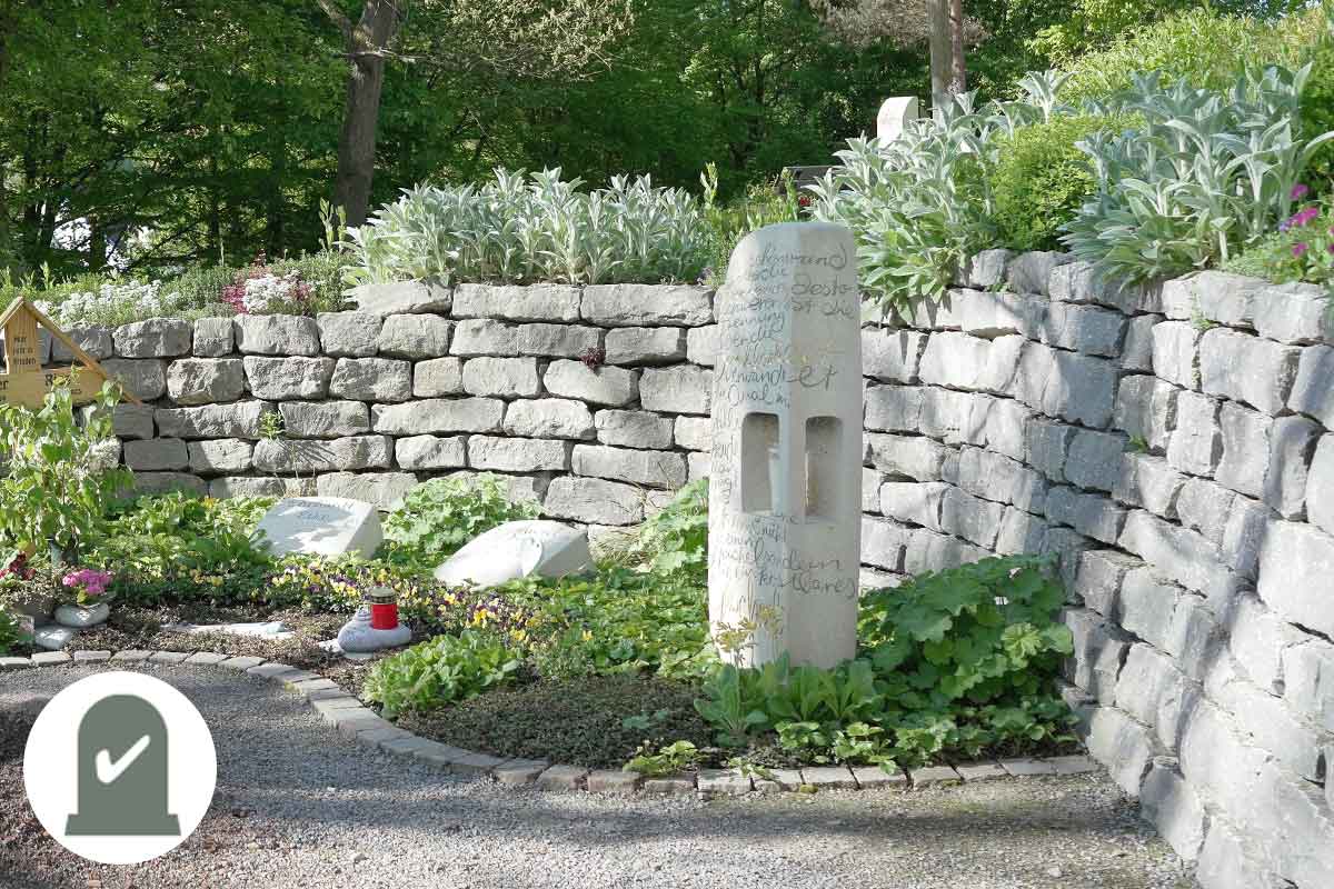 | Platz für eigene Grabspenden wie Blumen, Kerzen, Figuren, Weihwasser | Ruhezeit ist verlängerbar und bereits zu Lebzeiten reservierbar | ||