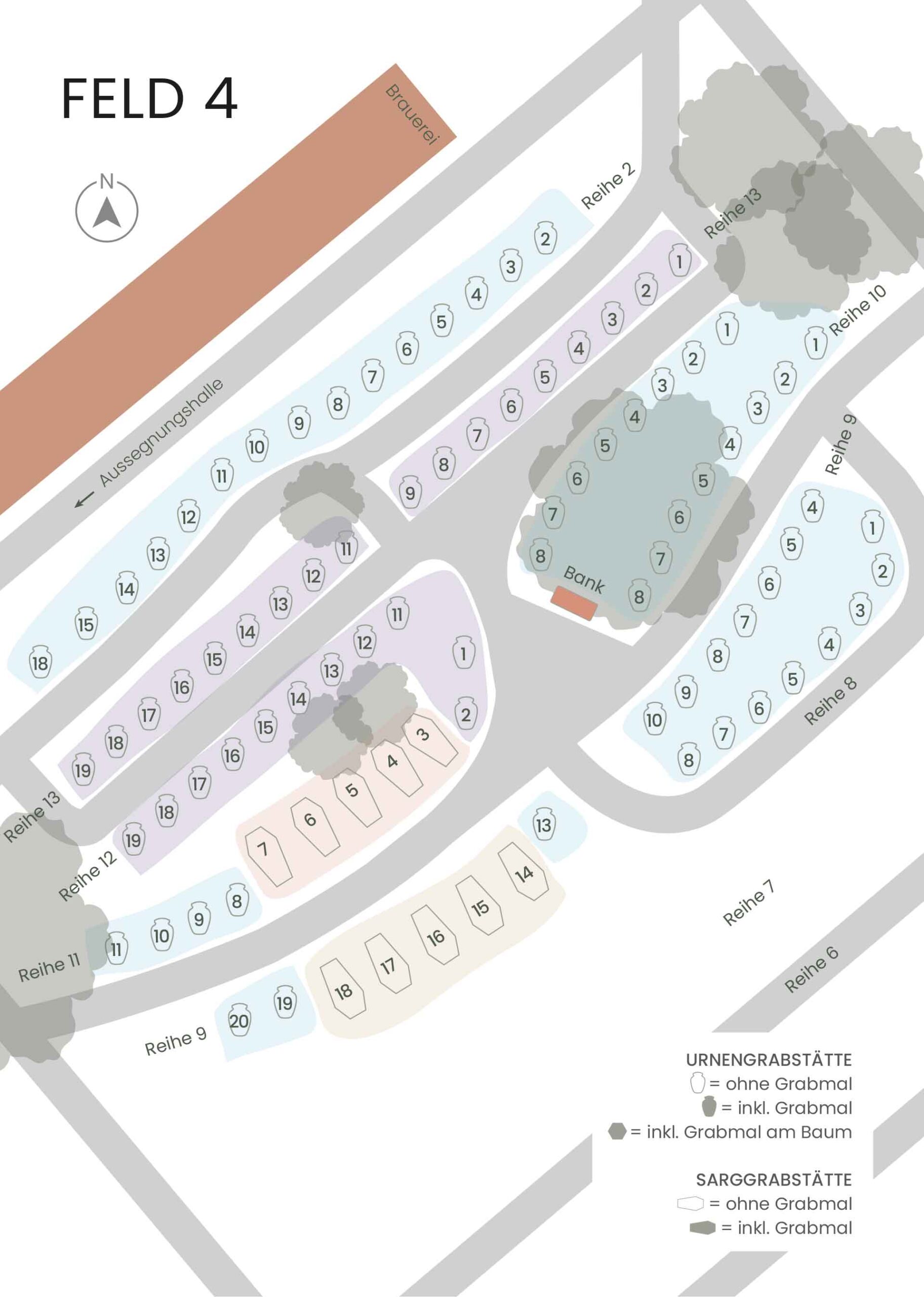 | Bis zu 4 Urnen pro Grabfläche | Bis zu 2 Sargbestattungen + bis zu 4 Urnen pro Grabfläche | ||