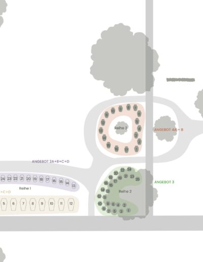 | Bis zu 4 Urnen pro Grabfläche | 1 Sargbestattung + bis zu 4 Urnen pro Grabfläche | ||