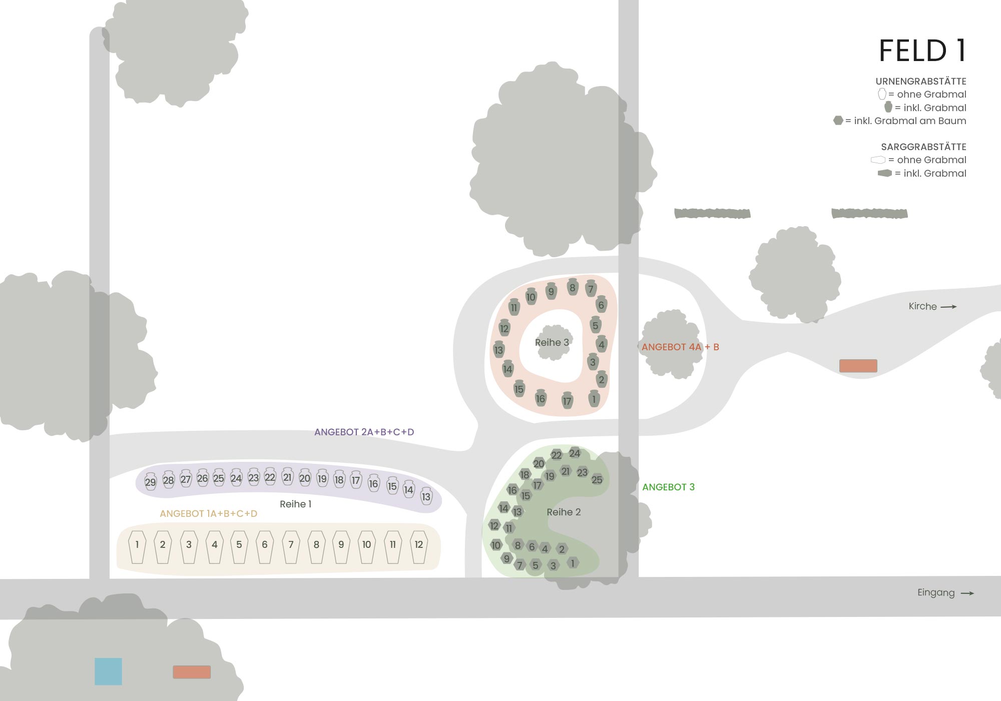 | Bis zu 4 Urnen pro Grabfläche | 1 Sargbestattung + bis zu 4 Urnen pro Grabfläche | ||